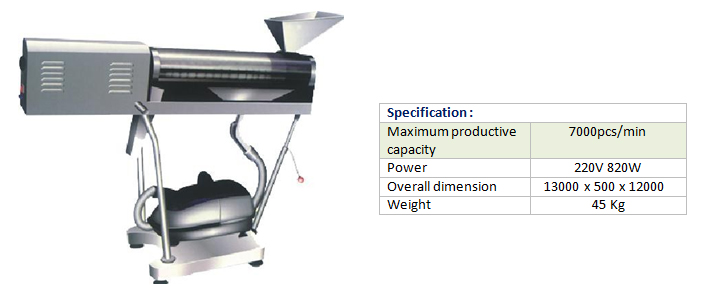 Merupakan peralatan khusus untuk farmasi. Ini memiliki fungsi memoles dan membersihkan debu pada meja dan kapsul dalam untuk meningkatkan kehalusan dan memenuhi standar kebersihan product farmasi maupun herbal . Sangat cocok untuk memoles kapsul dan tablet.